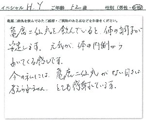 亀鹿二仙丸をご愛飲されているお客様の声 ・・・ |